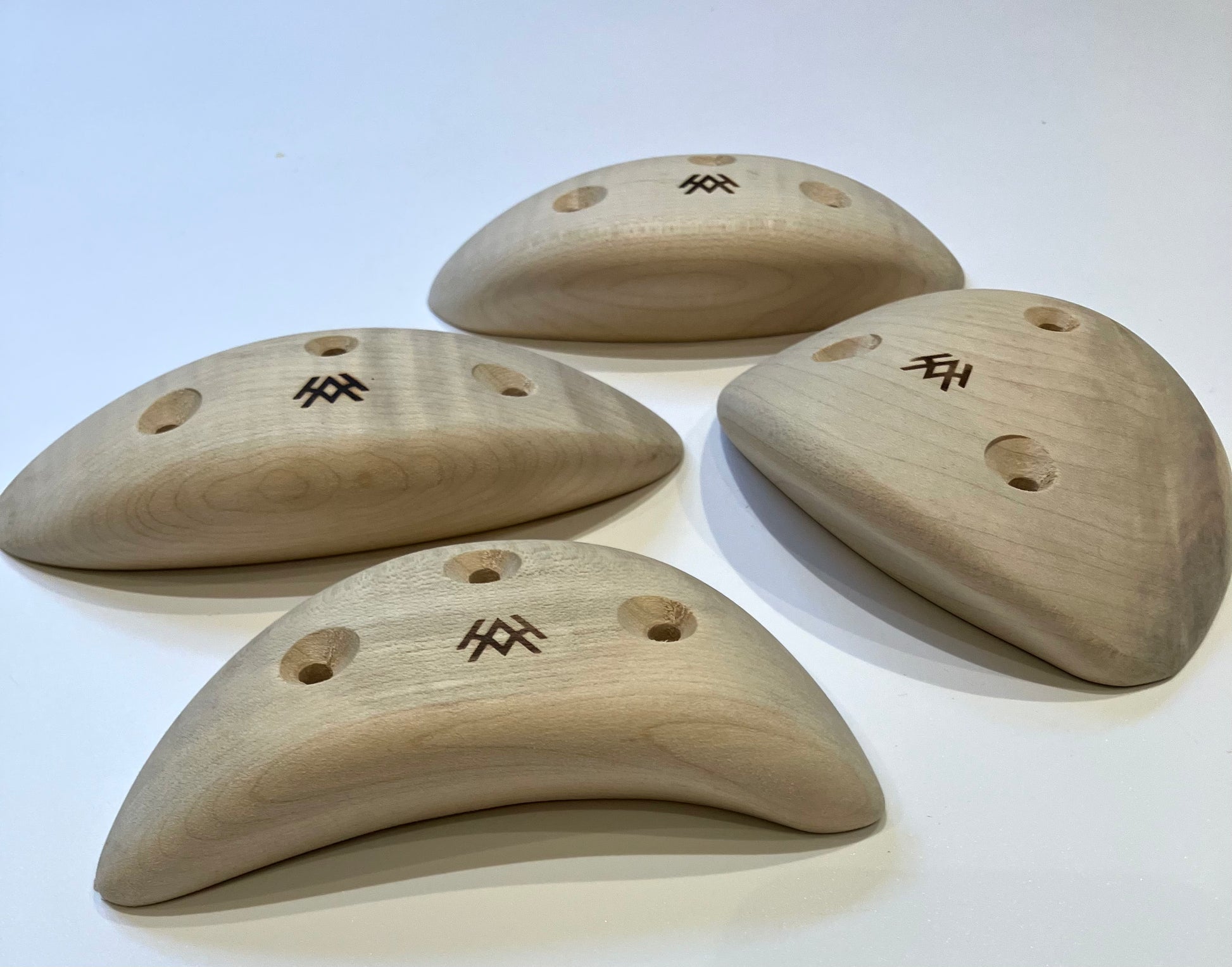 4 sycamore edges. All approx 30mm deep and very positive with a range of profiles. Would suit a steep board or as undercuts/sidepulls on a less steep board.
