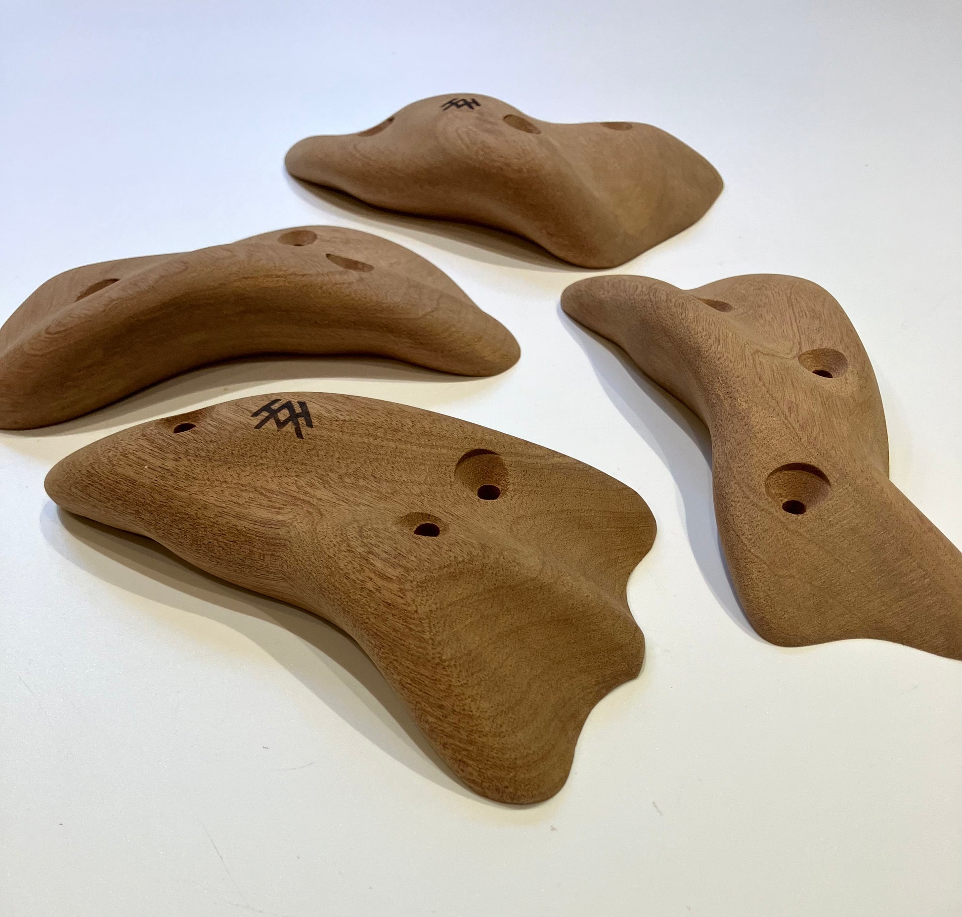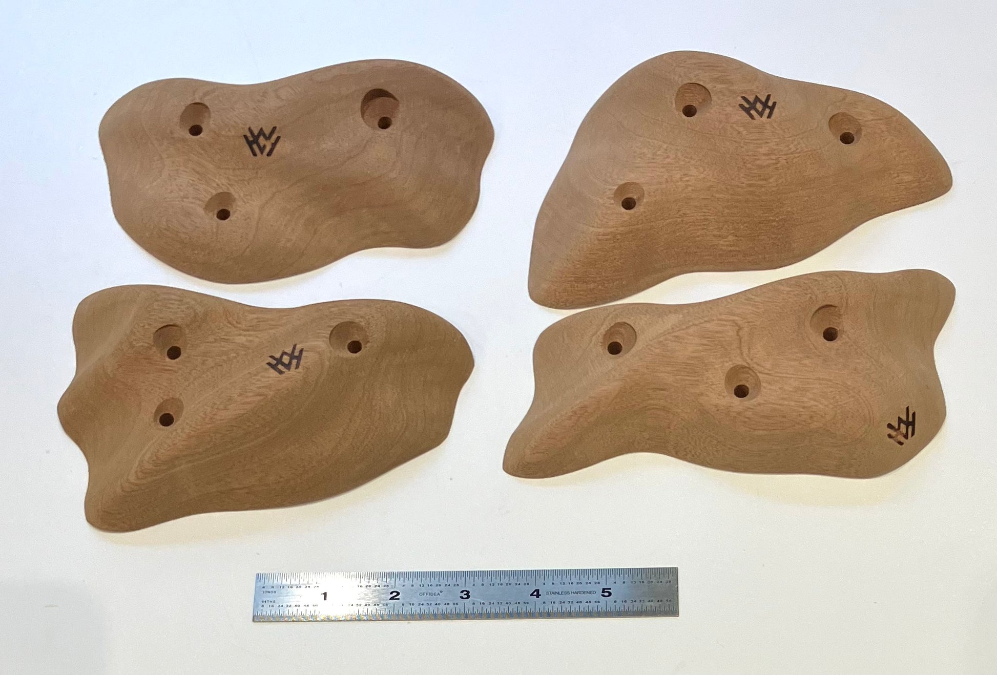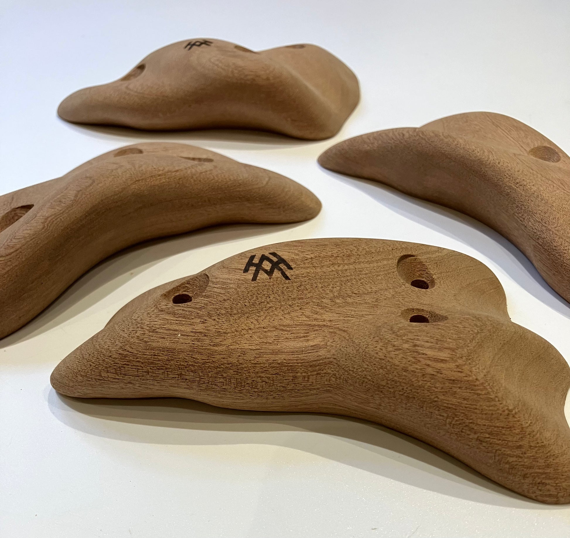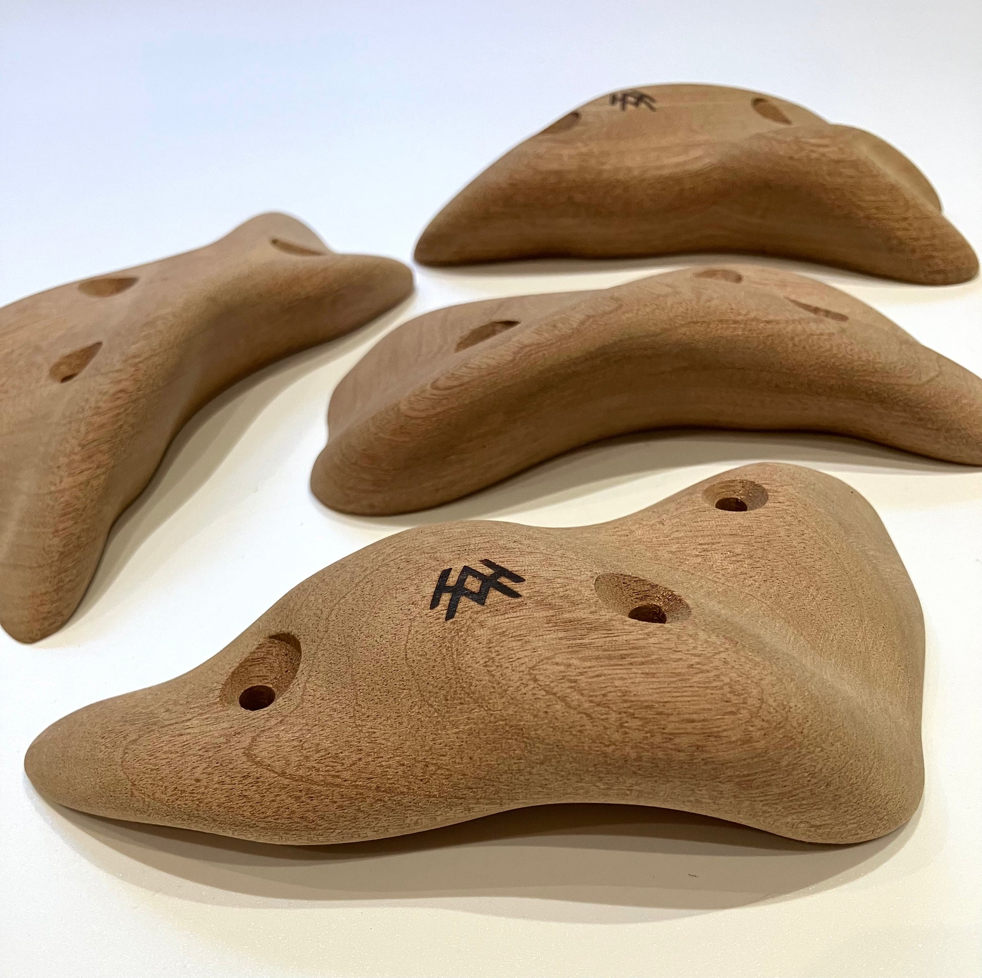 4 edges. These holds are designed to closer resemble some of the shapes found on rock. They are all between 20 and 30mm deep and positive but but not uniform in depth or positivity. Some have incuts on both sides so can either be used as a crimp and an undercut or as a pinch.