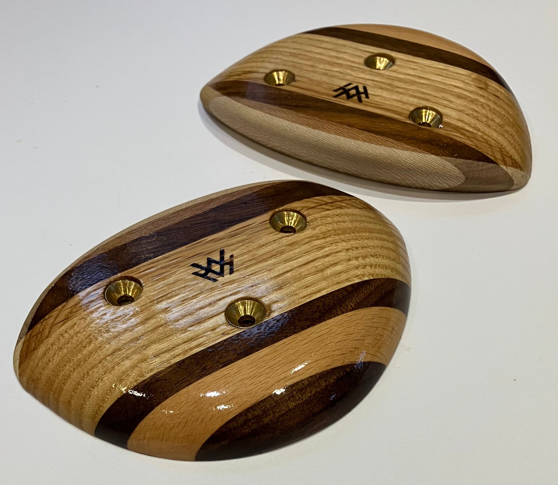 2 crimps. Approx 16mm deep. The footprint not quite identical but close enough for use on a Symmetrical board. Oak, walnut, beech, ash and sycamore with the front edge being sycamore.